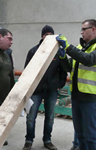 Przecieranie drewna konstrukcyjnego podczas wprowadzania Zakładowej Kontroli Produkcji w tartaku.